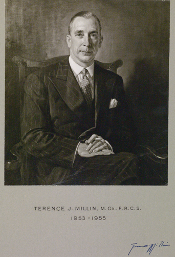 Terence Millin - born in Helen's Bay, Co. Down - introduced in 1945 a surgical treatment for large benign prostate glands using the retropubic prostatectomy, approaching the prostate from behind the pubic bone via the retropubic space. The Millin prostatectomy removed the prostate adenoma by enucleation via an incision in the prostate capsule, thereby avoiding incising the bladder. The introduction of the Millin prostatectomy was groundbreaking and Millin travelled worldwide thereafter, demonstrating his operation. Millin's book publication "Retropubic Urinary Surgery" in 1947 was also highly successful. Millin became President of the Section of Urology of the Royal Society of Medicine in 1948, was awarded the St Peter's Medal of the British Association of Urological Surgeons (BAUS) in 1951, and became President of BAUS in 1954. Millin was at one point the most famous urologist in the world, and the Millin prostatectomy was the main treatment for prostate-related bladder outflow obstruction from 1945 - 1970.